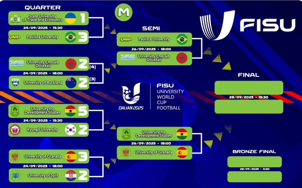 After the 5th-6th ranking game saw University of Valencia (ESP) beat the University of Sydney (AUS) on penalty shootouts, the semi-final opposing two Chinese universities took place in front of 500 spectators. The first half was tight, as neither Shanghai University of Sport nor Beijing Normal University managed to score.