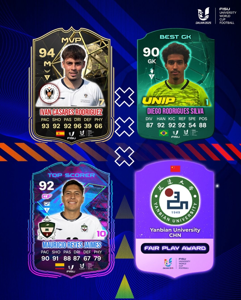 The game was intense and tight, and just as everyone thought the Brazilians were going to lift the trophy for the second time in a row – after Gabriel Vieira Barbara had score the only goal on the very first minute of the match – but whoever has followed the Dalian 2025 FISU University World cup knows that the Ghanians never ever give up. Mohammed Asigre Sulemana equalised at the 93rd minute, taking his dream into extra time.