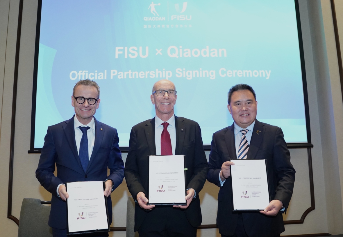 Today, FISU and Zhongqiao Sports formally announced the extension of their long-term partnership, one of the longest and most successful partnerships in university sports. The FISU Family will therefore exclusively wear Qiaodan sports casual and active sportswear at all the International University Sports Federation’s events until 2029.