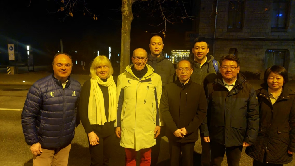 A five-member delegation led by Zhang Jian, President of Beijing Sport University (BSU), paid an official visit to the headquarters of the International University Sports Federation (FISU) in Lausanne on Tuesday 15 December. The delegation was warmly received by FISU Secretary General and CEO Matthias Remund, Deputy Secretary General Fernando Parente, Chief Sports Officer Shen Zhen, and Education and Development Senior Manager Bertrand Fincoeur.
