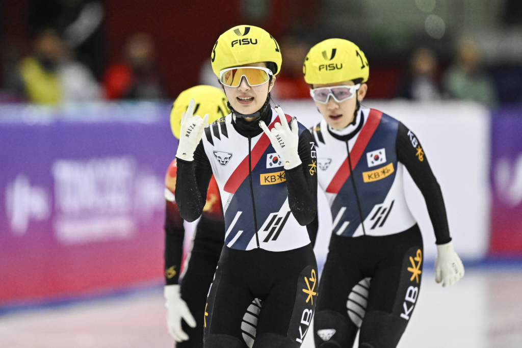 10 went to the Republic of Korea, whose ice queen, Gilli Kim shone bright like a diamond just like during the Torino 2025 FISU World University Games (where she won… 5 gold medals!). She took back three medals (two gold – 1500m and 300m relay – and the 1000m bronze) back to her home country! Minjeong Choi was also crowned for the 300m relay and finished second behind Kim on the 1500m to claim silver. Dohee Noh was the third wonder woman of the Korean 300m relay. Their teammates Jeongmin Lee, Juneseo Lee and Dong Min Shin won silver in the men’s 500m relay.