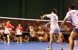 The first event of the day, the double mixed final was a close 3-sets battle that finally went to the talented Thai couple Voravichitchaikul/Prapakamol 11-15, 15-9 and 15-10. In the ladies final, Soratja Chansrisukot (THA) was not so lucky. Despite the encouragement of a large fan club (Soratja studies at Kasestsart University). There was not much she could do to counter the dexterity of Cheng Shao-Chieh (TPE), who took victory in three sets for Taiwan.