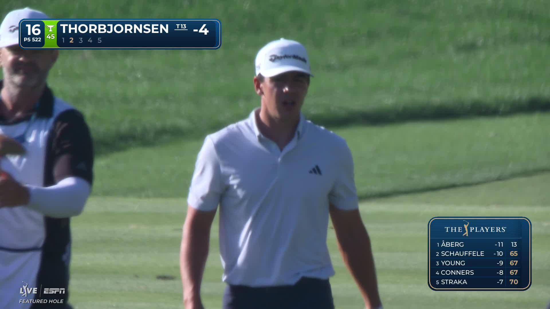 Michael Thorbjornsen taps in from 18 inches for birdie on No. 16 at THE PLAYERS