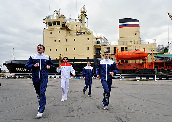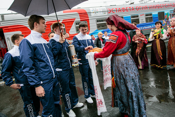 Universiade Flame travels through Main Streets of Arkhangelsk