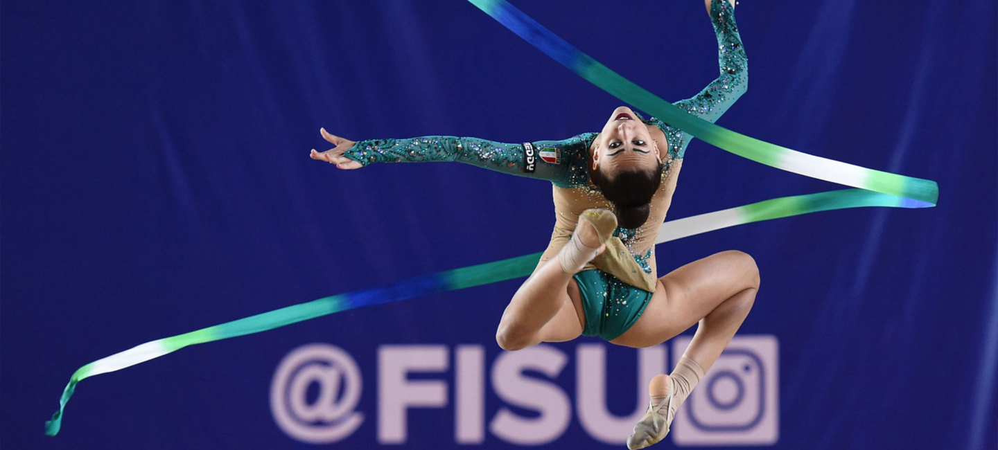 Grace and beauty are what best describes a Rhythmic Gymnastics competition. Up to now it is the only compulsory women-only discipline in the programme of FISU events. Rhythmic Gymnastics is without any doubt the preferred discipline by the audience as the fans are coming in droves to the see competition.