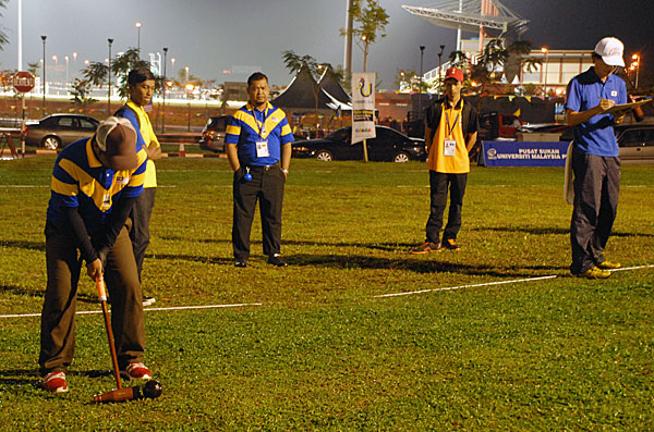 A popular sport in Asia, Woodball appeared in the World University Championship programme in 2004. The sport was invented in Chinese Taipei in 1990. Players use a mallet to pass a ball through gates. The game can be played on grass, sand or indoors.