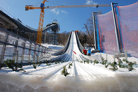 The brand new K90 jumping hill was used for the first time by our students-athletes this morning during the official training sessions for the ski jumping (men and women) and nordic combined. This superb venue was build especially for the games. The organisers had no experience in ski jumping and had to work in close collaboration with the FIS delegates in order to offer excellent sport conditions to our students. We have to underline the fact that they made an excellent job as everything was ready on time. The jumpers were very satisfied with the quality of the venue and with the smooth running of the organisation.