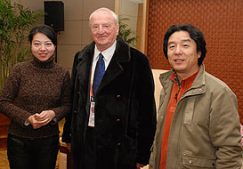FISU President George Killian, an avid stamp collector specializing in University Sports and Basketball, was all ears when the two artists responsible for the artwork of the stamps, Ms. Shang Yu and Mr. Wang Huming of the Artwork Editing Division of the Postage Stamp Printing Bureau of the China Post Group, explained him their artwork.