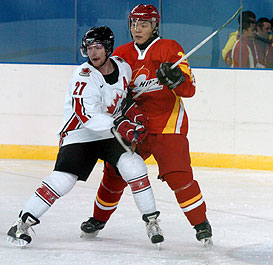 Host China, clearly motivated by the near capacity crowd of 2,200 at the Skating Gym of the Heiljongjang Institute for Physical Education, could withhold most of the attacks of title defender Canada only allowing two goals in the first period. However, they slacked in the second and the Canadians took advantage of their weakness and lit the backlight eight times. In the last period the Canucks drilled another three past goalie Xie Ming.