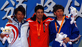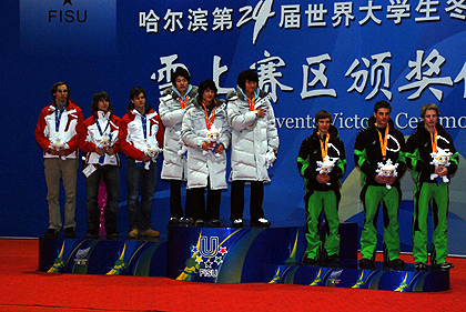 Alpine skiing competition continued with the Men’s Giant Slalom. The Swiss skiers are in a very good shape here in Yabuli. Indeed, they took another gold medal today, thanks to Dimitri Cuche. Twelve skiers finished the first run in the same second so the second run was very open. Dimitri started this second run ranked sixth. With a perfect race performed without any mistake, Dimitri was able to win. Ryuunosuke from Japan finished second and Jonathan Midol from France (who was first after the first run) took the third place.