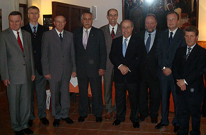 The FISU EvalCom 2015 WU (Marian Dymalski, Oleg Matytsin, Roger Roth, Hassan Chikh and Chairman Leonz Eder) at the Official reception in the “Carmen de la Victoria” Palace with José Torres Hurtado, Mayor of Granada; Francisco Gonzalez Lodeiro, Granada Uni