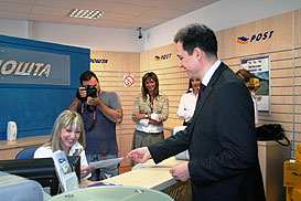 The director of Serbian Post Offices opened the new post office the traditional way: by sending a letter to Serbian Prime Minister and President of UB2009 Organization Committee, Mirko Cvetkovic.