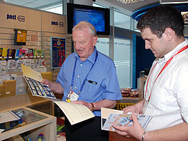 FISU President Killian adding some stamps to his vast collection