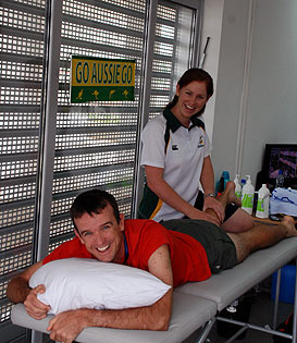 Winner of the Race Wayne Thomas receives an invigorating massage