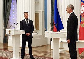 On July 17th, 2009, President of the Russian Federation Dmitry Medvedev met the winners and medallists of the Russian delegation at the 25th Summer Universiade in Belgrade, Serbia. The meeting was held in Ekaterininsky Hall of the Kremlin in Moscow. The Russian delegation headed the medal table tally with 76 medals (27 gold, 22 silver & 27 bronze).