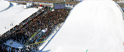 A spectator record a the the Ski Jumping competitions