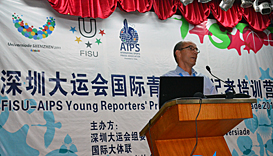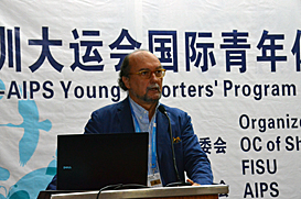 AIPS President Gianni MerloIn the first of the 11 seminars the young journalists, who hail from all five continents and 33 different countries, will take part in, Pierre, along with Leonz Eder and Verena Burk, chair and vice-chair of the FISU international press committee, respectively, attempted to shed some light on the Universiade’s governing body.