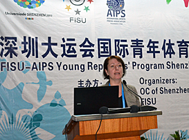 Burk covered the majority of FISU’s history, from its 1947 inception, through the organization’s development, which has seen it grow to 163 member federations from all five continents. She also enlightened the young journalists to the fact that FISU does, in fact, operate outside the Univerisades.