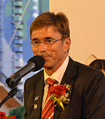 Swiss HoD Thomas MörgeliThe event was staged in the Shenzhen Crowne Plaza Hotel, on the outside pool deck, but the look and feel was Swiss all the way. ‘We’re proud of our country, but people expect us to bring the traditional Swiss props like the alpenhorn, HoD Thomas Mörgeli admitted. The Chef de Mission considers winning early a gold and silver in men’s cycling is a good omen for the rest of the Universiade. ‘Indeed, it’s a real boost for the other athletes to excel’, the Swiss Skipper said. ‘Unfortunately today, our two best fencers and medal hopefuls were eliminated. But that’s sport. You loose some and you win some. Nevertheless, the atmosphere within the delegation is pretty good. ‘Smart, Strong, Swiss’ is our slogan and we put a lot of energy and effort to create a great team spirit for TeamSwitzerland.’