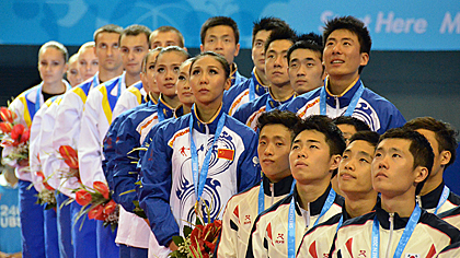 Aerobics Dance medal podium (Photo: Y. Dufour/FISU)