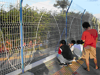 Fans enjoying the live action through the bushes outside the Athletics field