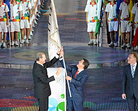 Mr. Igor Shuvalov waves the FISU Flag