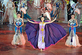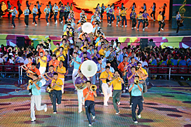 Bright costumes‘We end the games by starting with something anew’, FISU President Gallien had announced at the final FISU Press Conference in the MMC yesterday. ‘We’re curious for the result.’ And the result was indeed magic.