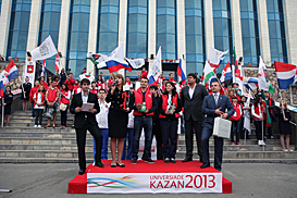 While greeting the Kazan 2013 delegation, Deputy Minister Ruslan Sadchenko said: «We are having an amazing festival of youth and sports inPermtoday! Our fellow-countrymen have successfully defended the country’s sports honor at the 2011 Summer Universiade in Shenzhen, and our next goal now is to win a triumph at the 2013 Universiade inKazan. Youth ofPermare ready to contribute to the preparations for the Universiade and to prove that Russia is the most hospitable country that is able to conduct the best international youth and sports festival!»
