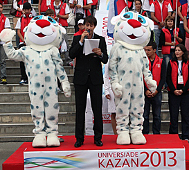 The celebrations dedicated to the FISU Flag Relay in Perm evolved on the premises of the Perm Fair, which also became a venue for meetings with students and a ceremony of signing a cooperation agreement between the Kazan 2013 Executive Directorate and Perm State National Research University.