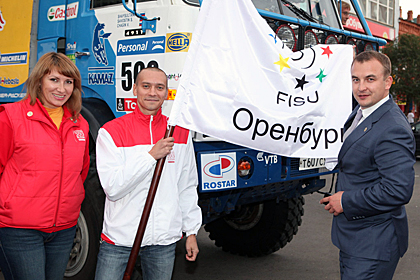 ORENBURG – Alexander Dobroskok, a two-time world champion and Olympic diving vice-champion, was awarded the Kazan 2013 Ambassador title during the FISU Flag Relay festivities in Orenburg.