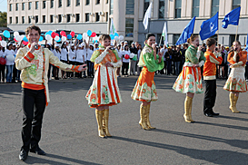 A warm welcome awaited the Kazan 2013 delegates at the railway station of Orenburg; the Kazan 2013 delegates received a greeting from Elena Ostanina, Deputy Minister of Culture, Sports and Youth Policy of the Orenburg Region; Tatyana Nosova, Pro-Rector of Orenburg State University; Alexey Goncharov, Deputy Managing Director of the Orenburg Branch of Sberbank of Russia; as well as students of three leading higher education institutions of the region, namely Orenburg State University, Orenburg State Medical Academy and Orenburg State Agrarian University.