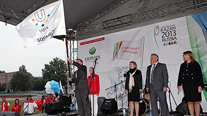 The Gaudeamus Igitur was played, and the FISU Flag replica with the name of the city of Samara on it was carried in the stadium and handed over to the rector of Samara State University and Kristina Rumyantseva, the newly elected Kazan 2013 Ambassador. Following the official ceremony, the Lokomotiv Stadium hosted an amazing concert where best student bands of the Samara Region and Tatarstan made their appearances. The concert culminated in a gig, presented by the Matrekha band, which previously performed in Orenburg, and by the Murakami rock band from Tatarstan.