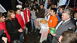 SAMARA – ‘The Universiade in Your City!’ train arrived in Samara. For one day, the city turned into a venue for youth events, meetings of students and official meetings aimed to promote the 2013 Summer Universiade and development of partnership between Samara and Tatarstan. At the railway station, the Kazan 2013 delegates received a warm welcome from volunteers, students of Samara State University with Rector Igor Noskov at the head, as well as Samara Region’s youth and sports ministry officials.