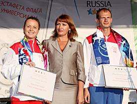 Two renowned race walkers of Mordovia, Tatyana Kalmykova and Andrey Krivov, became Kazan 2013 Ambassadors. Credentials were handed by the President of the Republic of Mordovia Nikolay Merkushkin, Deputy Minister of Education and Science of the Republic of Tatarstan Guzalia Minkina and Chief of Staff of the Kazan 2013 Executive Directorate Larisa Sulima. It’s quite logical that the Kazan 2013 Ambassador titles were bestowed upon these race walkers, since race walking is a major sport in Mordovia.