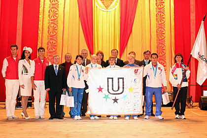The FISU Flag replica was handed over to Minister Anatoly Nikolaev and Rector Vsevolod Agakov, who in their turn passed it to Alina Ivanova, an Olympic race walk champion and a newly appointed Kazan 2013 Ambassador. «Today we leave in your city a unique ensign, symbolizing our partnership with you and desire to stage the best World University Games inKazanever. In 2013 all these replicas will meet together at the Opening Ceremony in Kazan and demonstrate to the world the unity of the Russian team engaged in the preparations and staging of the Games», Larisa Sulima said.