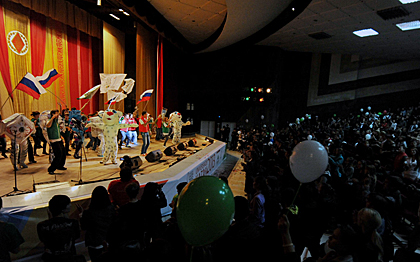 The concert proceeded with a joint performance of best creative bands of Tatarstan and Chuvashia. Students of the Ilya Ulyanov Chuvash State University, Chuvash State Pedagogical University and Chuvash State Cooperative University showcased their talents, the most memorable of them were Andrey Makarov and Ilya Moiseev, a fashion theatre of the Chuvash State Pedagogical University and FreezeLight, a unique group of techno art enthusiasts.