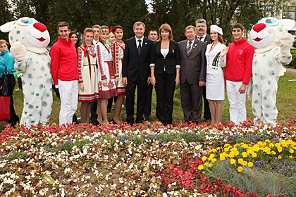 Before the concert started, the Flowers of the Universiade flowerbed were solemnly inaugurated in the front yard of the Chuvash State University. The ceremony was attended by Anatoly Nikolaev, Minister of Physical Culture and Sports of the Republic of Chuvashia; Danil Mustafin, 1st Deputy Minister of Education and Science of the Republic of Tatarstan; Vsevolod Agakov, Rector of the Ilya Ulyanov Chuvash State University; Larisa Sulima, Chief of Staff of the Kazan 2013 Executive Directorate and young activists of Tatarstan and Chuvashia.