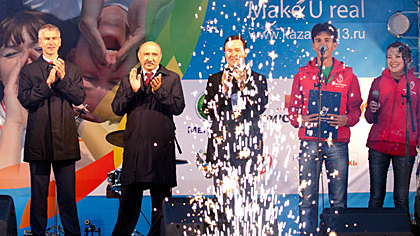 The motto ‘Make U Real’ reflects the importance attached to each volunteer’s involvement in delivering a large-scale sporting event and those possibilities that are opened up for enthusiasts. ‘Make U Real’ means that the 2013 Summer Universiade is a joint project the successful implementation of which depends on a well-coordinated work of the team.
