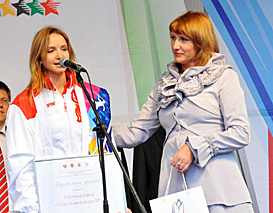Elena Posevina, a two-time Olympic champion and repeat World and European champion in rhythmic gymnastics, was appointed Kazan 2013 Ambassador inNizhny Novgorod. «Such athletes as Elena Posevina that are beautiful, successful and active become the pride of the nation and idols for thousands of young people. We are confident that Elena will be a perfect representative of the ideas that Team 2013 is loyal to, such as commitment to sports, healthy way of life, creativity and friendship!», Larisa Sulima said.