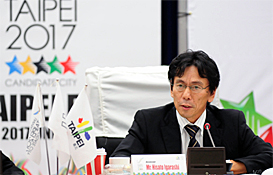 The general presentation chaired by the Mayor Lung-Bin HAU took place at the city hall later in the afternoon. The Minister of Education, Mr. Ching-Ji WU, the Director of Sports Affairs Council, Mr.Rey CHOU, and the heads of different departments of the city government attended the meeting to support the bid of Taipei City. In the beginning of the meeting, Mayor Lung-Bin Hau presented HTC smart phone and ASUS tablet computers that are both designed and made in Chinese Taipei to the evaluation committee members for experiencing the advanced information technology and smooth internet connection anywhere inTaipei. In addition, all the information related to the inspection visit was already installed on the phone as well as in the tablet computer. Right after the welcome speech of the Mayor, Mr. Hisato Igarashi, the vice-chair of the evaluation committee gave his address too. Later the bidding committee of Taipei gave a detailed and comprehensive presentation and FISU also brought up their concerns.