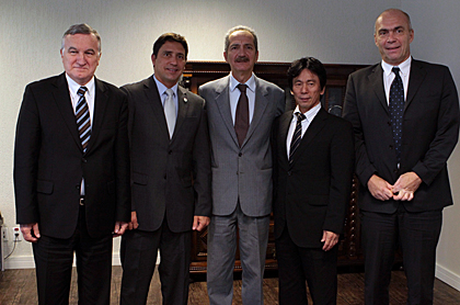FISU delegates Hisato Igarashi, Marian and Marc Dymalski Vandenplas met with governor Agnelo Queiroz who stressed the importance of the event to the capital and its residents. “Brasília is excited and hopeful to receive the Universiade. We know we have a number of major sports events inBrazilin the coming years, but the Universiade will be held here in our capital and will leave a legacy and respond to aspirations of the city and its residents”, said Agnelo.