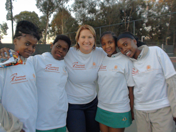 President of Netball America Sonya Ottoway with students from the Oprah Winfrey Leadership Academy for Girls, last week in Cape Town