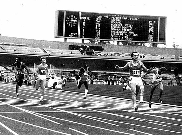 Mennea after breaking the World Record at the 1979 SU in Mexico CityBorn in Barletta (ITA) on 28 June 1952, the Italian was one of the great figures of university sport. He participated in three Universiades (1973 in Moscow, 1975 in Rome and 1979 in Mexico City) and won 5 gold medals (3 in 200 m, 1 in 100 m and 1 in 4 x 100 m), and two bronze medals (in 100 m and 4 x 100 m). In addition, at the 1979 Universiade in Mexico City, he broke the world record on the 200 m, beaten 9 years earlier by Tommie Smith (well-known for raising his fist to protest against apartheid in South Africa and against racial segregation in the United States) at the 1968 Olympics, also held in Mexico City. His record (19.32) was to remain unbeaten for over 17 years and was eventually broken by another legend of athletics, Michael Johnson! Mennea’s record is still the European record.