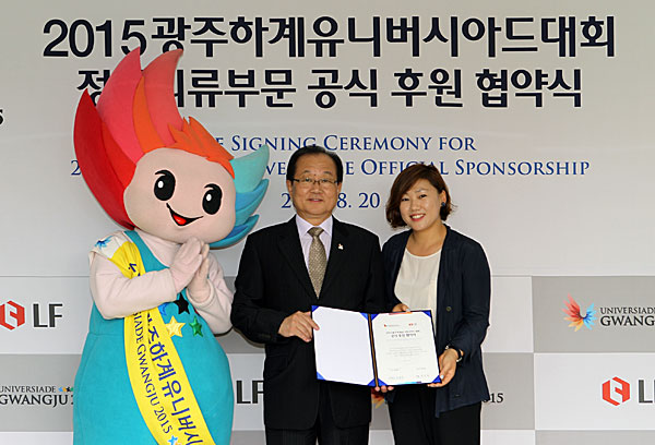 2015 Gwangju Universiade Organizing Committee signed an official sponsorship agreement with LF Corp: Kim Yoon-suk, Secretary General of GUOC (l) and Jo Su-bin, Director of LF (r) were in attendance
