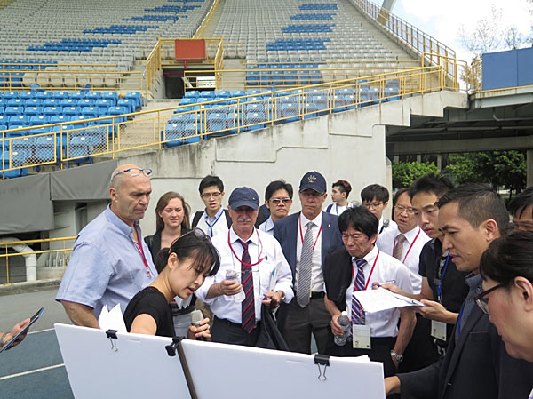In the morning, the Universiade Organising Committee led by the Deputy CEO Chia-wen Hung, and all the FISU delegates, went to the Taipei City Sports Park and the National Taiwan Sport University to look over the respective venues and facilities therein. The Organising Committee presented an onsite report on their overall plan for the spatial arrangement of the basketball court and its surrounding facilities in the Taipei Arena, as well as the entrance-exit route for the Opening and Closing Ceremonies at the Taipei Municipal Stadium.
