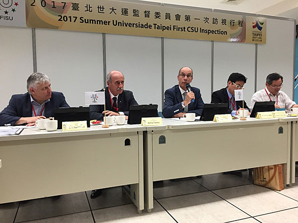 TAIPEI CITY – The FISU Summer Universiade Supervision Committee (CSU), led by its Chair also the FISU 1st Vice President Leonz Eder, the CSU Vice-Chair Kemal Tamer, the CSU members Hisato Igarashi and Kenny Chow, as well as the FISU Staff from the General Secretariat, started its 1st CSU Inspection Visit on 13th May in Taipei, the host city of 2017 Summer Universiade.