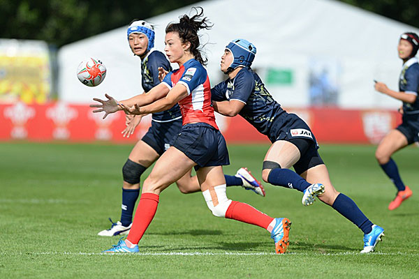 Captain Lucy Nye scored twice as the British women put a tough morning behind them and secured a spot in the fifth-sixth final by beating Spain 33-0. They had been caught cold by a lightening-sharp Japanese side, losing 21-0 and then falling 31-5 to the powerful Pool A-topping French.