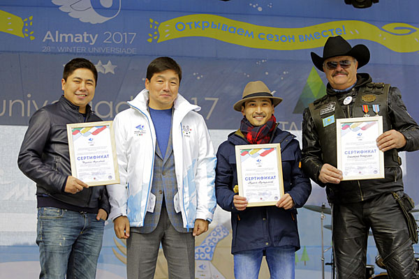 In the meanwhile the city also celebrated the opening of a new winter season in ‘Medeu’ High-mountain Ice Rink in conjunction with the 100 days prior to the Universiade in presence of the Mayor of Almaty Bauyrzhan Baibek. The event was organized by the Winter Universiade Organizing Directorate with the support of the official partner ‘Bank of Astana’. During the event, the certificates of the Winter Universiade 2017 Ambassadors were given to famous biker Dmitriy Petrukhin, circus artist Murat Muturganov and famous director, actor and screenwriter Nurtas Adambayev.