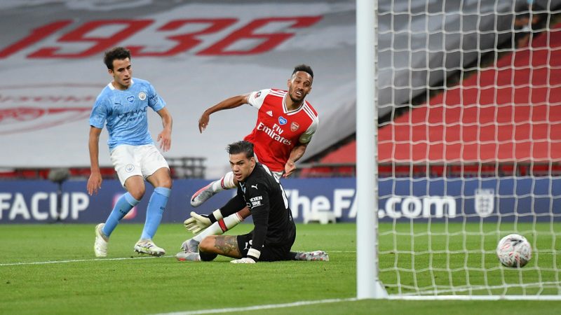 City left themselves open at the back and Aubameyang beat the offside trap as he accelerated onto Kieran Tierney's sublime pass before slotting under Ederson.