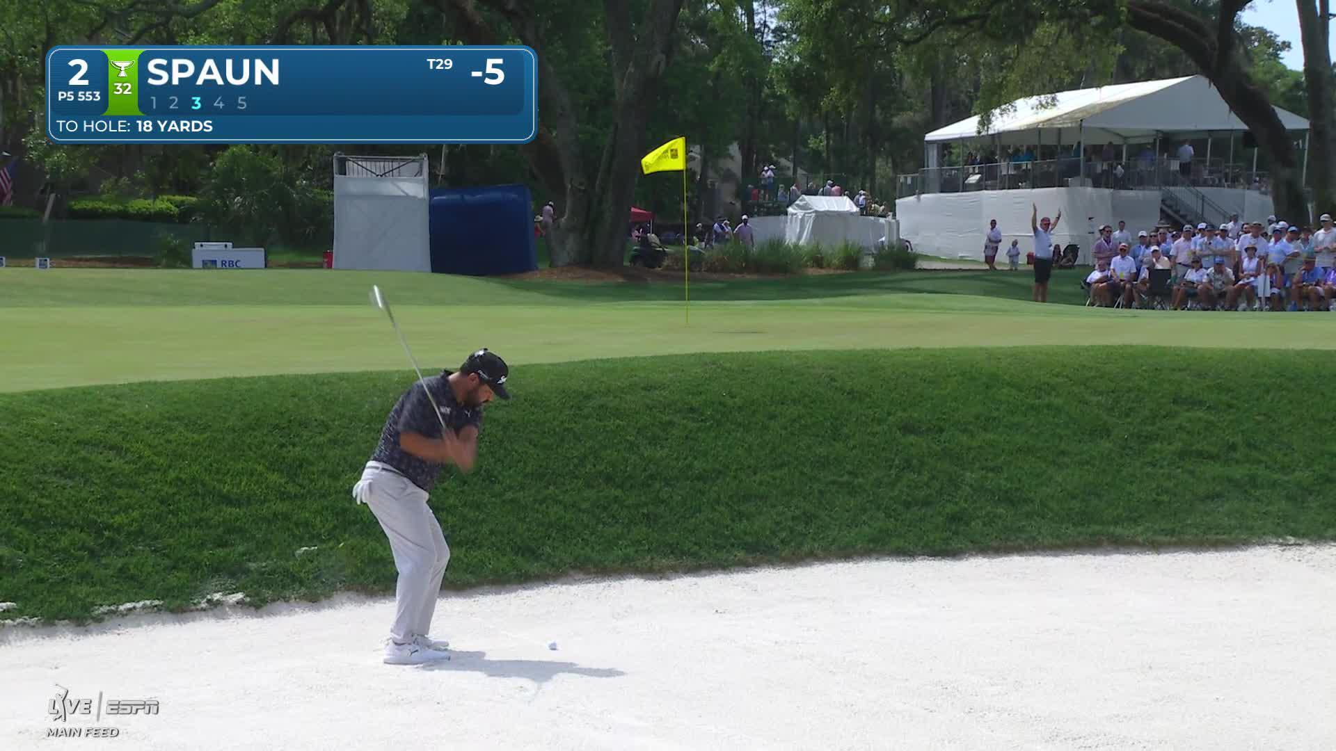 J.J. Spaun gets up-and-down from 96 yards for birdie on No. 9 at RBC Heritage